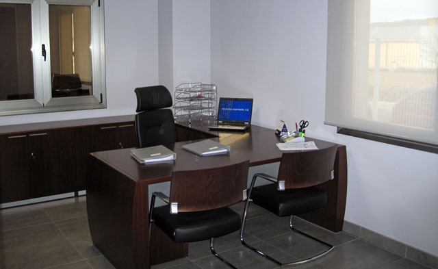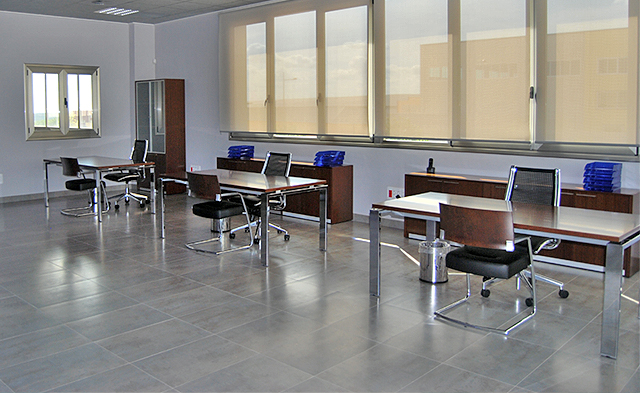 La oficina, ubicada en el primer piso, consta de dos despachos para dirección de empresa y una amplia recepción. En el piso superior disponemos de una amplia sala de oficinas para los técnicos de la empresa también adaptada para reuniones y eventos. Los servicios comunes dotados con dos aseos, vestuarios y comedor.