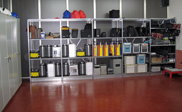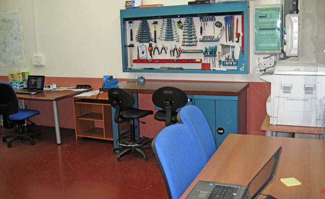 En el taller-laboratorio se revisan los equipos de medición, inyección, etc. para que estén siempre en un óptimo estado para su uso. Este espacio está dedicado también para el estudio y prueba de nuevos sistemas de protección así como para organización y almacenaje de herramientas, equipos de medida, equipos de inyección, etc. En el almacén se acopian diversos materiales, útiles, herramientas, material de seguridad, etc.