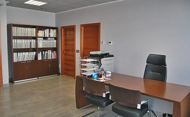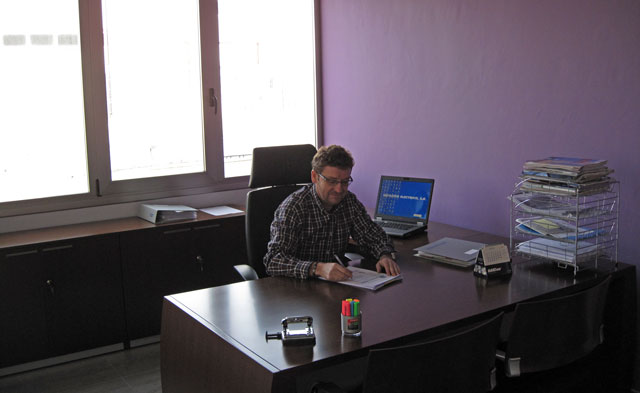La oficina, ubicada en el primer piso, consta de dos despachos para dirección de empresa y una amplia recepción. En el piso superior disponemos de una amplia sala de oficinas para los técnicos de la empresa también adaptada para reuniones y eventos. Los servicios comunes dotados con dos aseos, vestuarios y comedor.